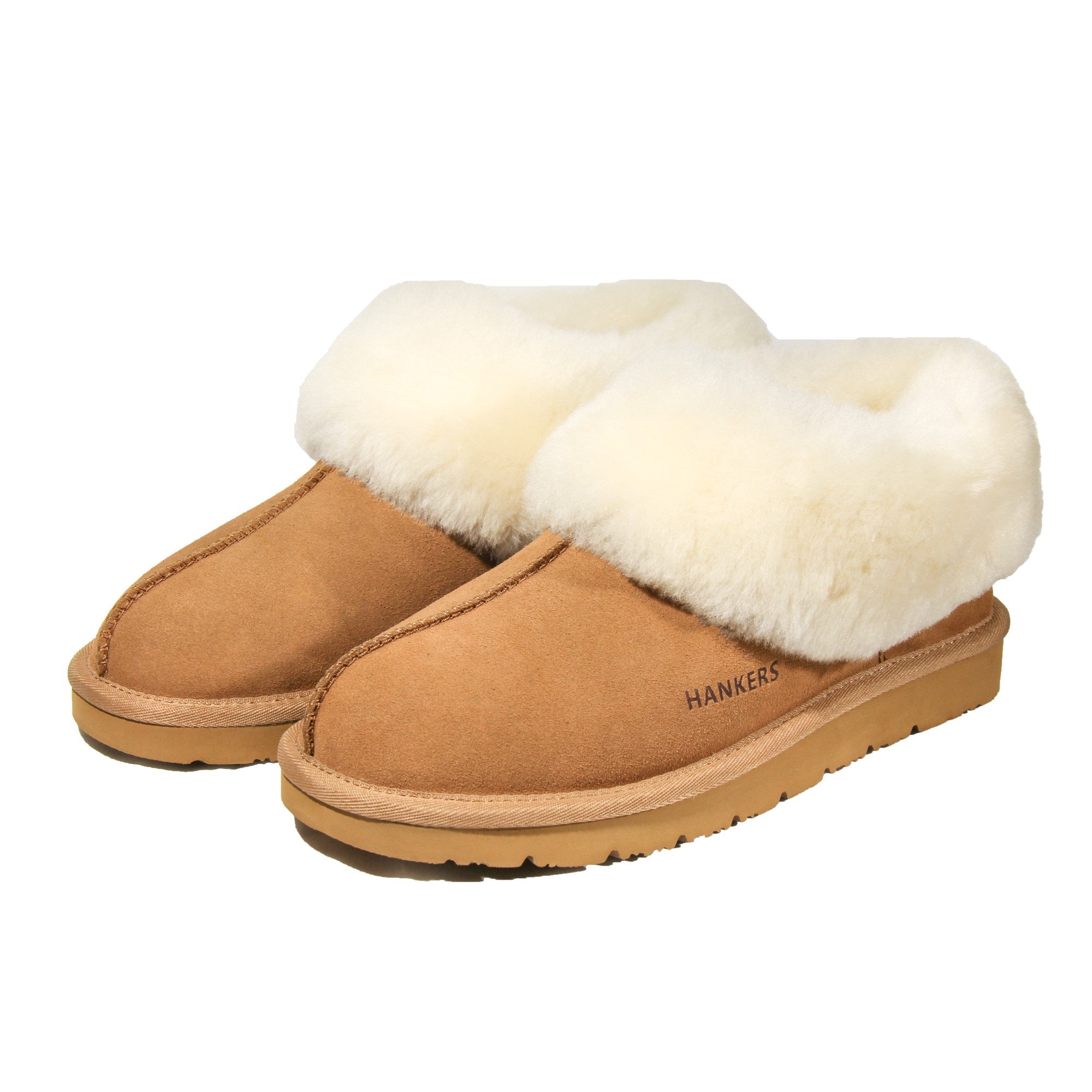 Genuine Sheepskin: Upper - Sheepskin, Lining - sheepskin wool. Crafted from natural Australian sheep leather, the Hankers women's Boot slippers deliver a warm and soft touch, embodying luxury and comfort that your feet will love.