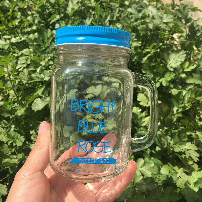 Stocked 480 ML Clear Square Bottom Glass Mason Jar with Four Colors Logo and Caps |