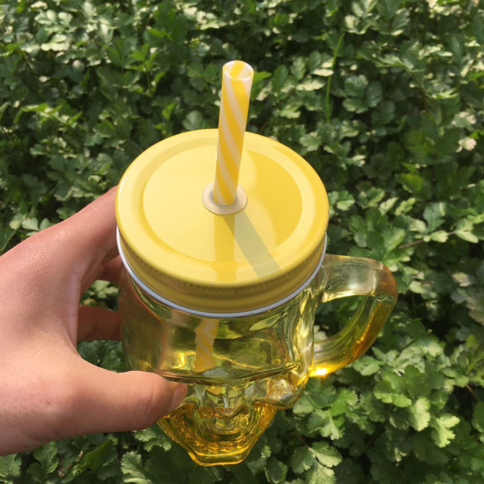 Factory Wholesale 460 ML Yellow Skull Shape Mason Cup with Yellow Color Straw |