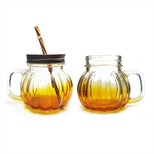 Wholesale Glass Mason Cup Personalized 12 OZ Pumpkin Shape Yellow Mason Drinking Jar Buy Cheap Price Factory |